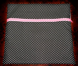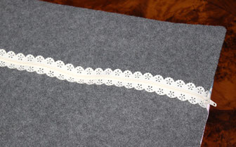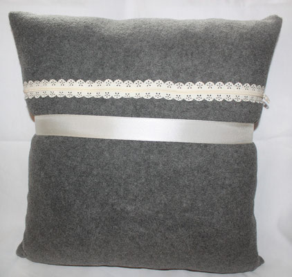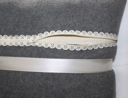 ...ist wieder ein Kissenbezug mit passendem von mir genähtem Füllkissen. Diesmal etwas größer (ca. 40x40 cm). Auf der Rückseite befindet sich diesmal ein niedlicher Spitzenreißverschluss. Sehr